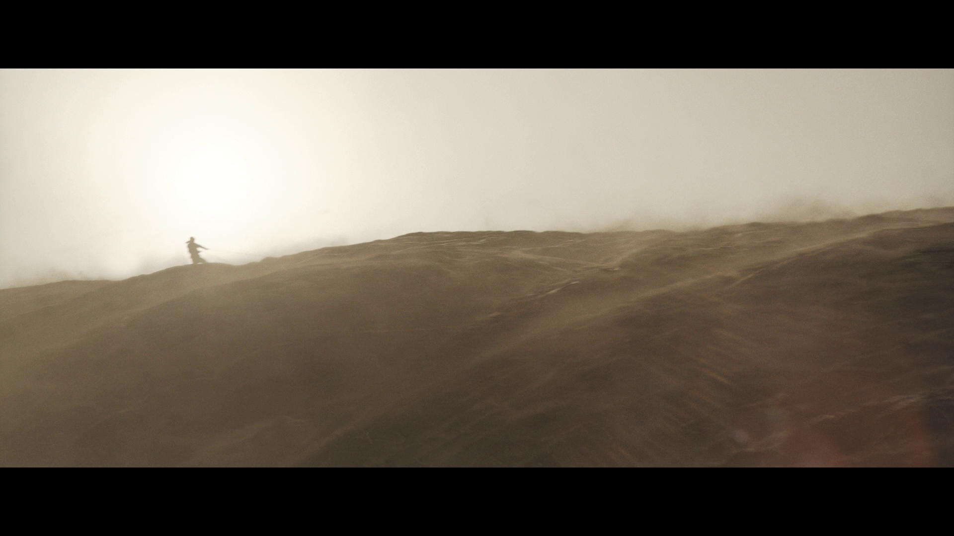 The blending is meticulous, making the flares feel intrinsic to the world itself, drawing you deeper into the vastness of the desert. And the way their opacity changes, gently fading in and out, aligns perfectly with the rhythm of the scene. It is not just light for its own sake; it is light with purpose, guiding your attention and intensifying the scale of the moment.