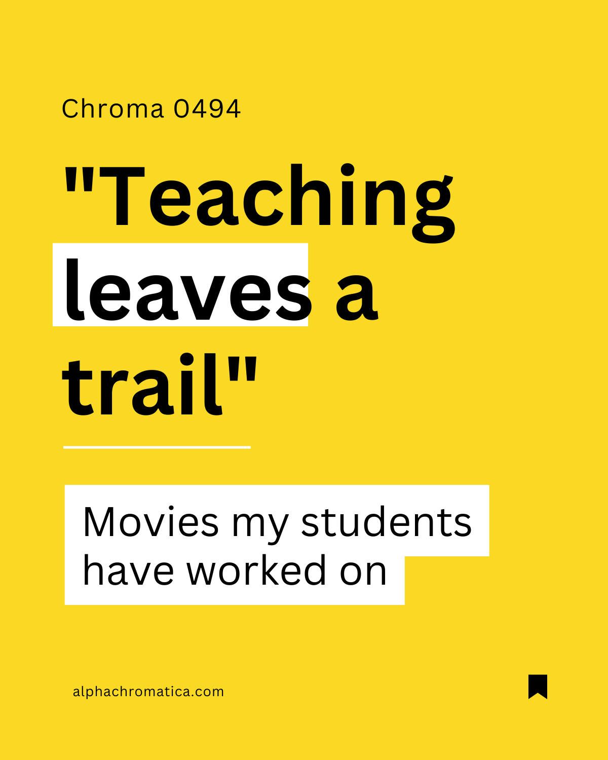 Over the course of my teaching career, artists I trained have gone on to work on hundreds of feature films and TV Shows.