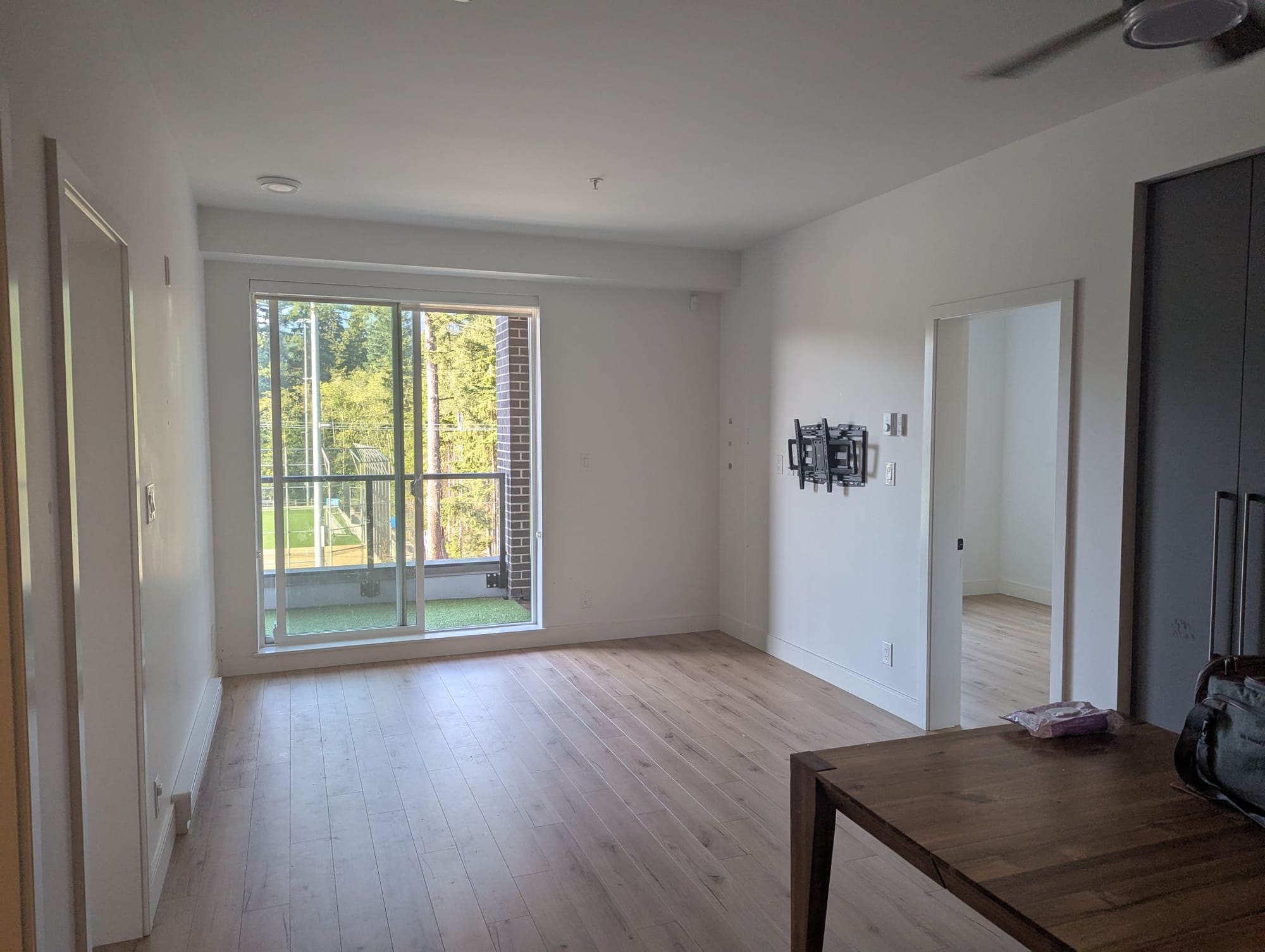 Empty floor. Balcony glass.